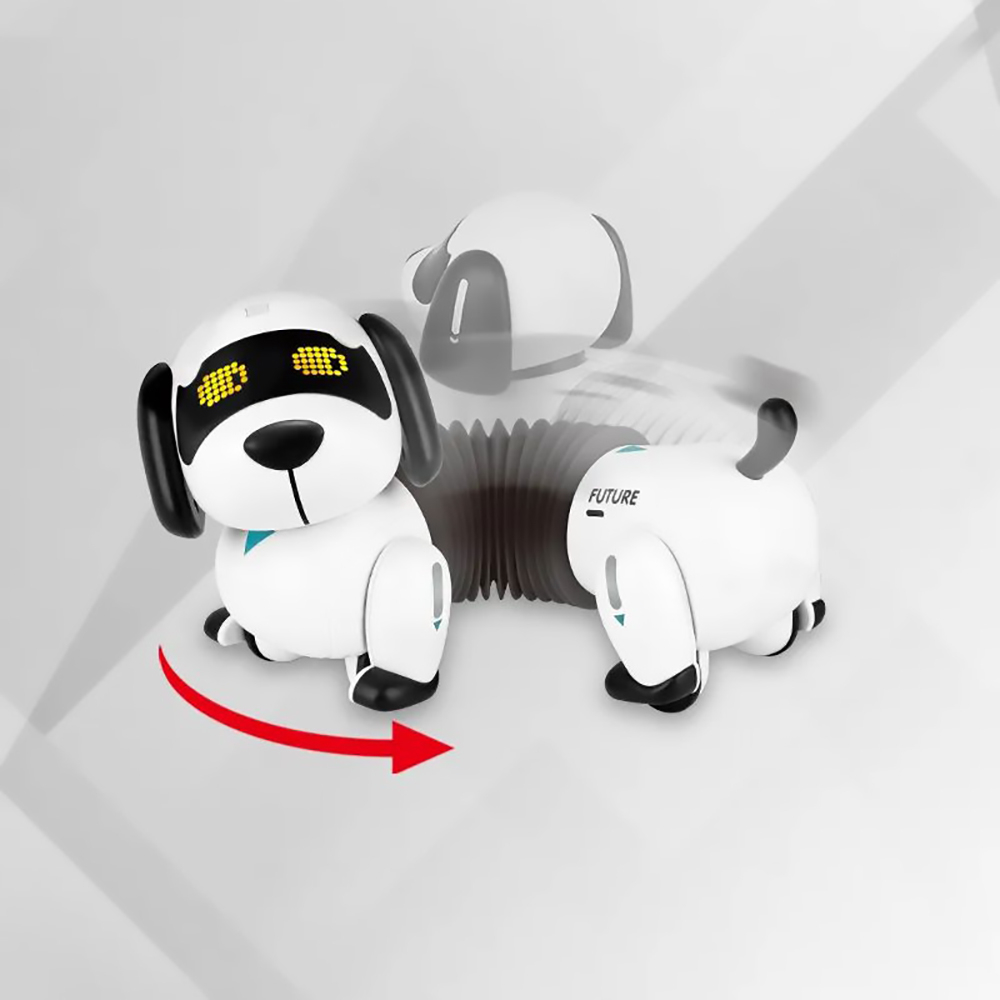 - Особенноститаксы удлиняют и укорачивают свое тело; вперед, назад, влево, вправо; может выполнять 50 инструкций по программированию; когда вы нажимаете сенсорную кнопку, может петь песню; при нажатии кнопки «Follow» такса следует за источником сигнала с пульта дистанционного управления.