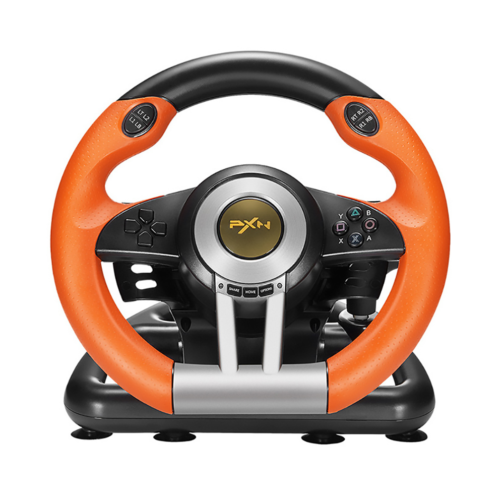 Игровой руль с педалями PXN V3 Pro для ПК, PS3-4, XBox One, Nintendo Switch с реалистичной конструкцией может использоваться в гоночных играх. Контроллер игровой может фиксироваться на горизонтальной поверхности за счет клейких присосок. Игровой руль для компьютера поддерживает обратную связь и вибрацию, которые делают процесс более реалистичным. На руле есть износостойкая прорезиненная оплетка, благодаря которой руки не соскальзывают и держатся крепче. За счет вращения на 90 градусов достигается эргономичность настоящего гоночного руля. В комплекте идут складные педали с функцией газа и тормоза.