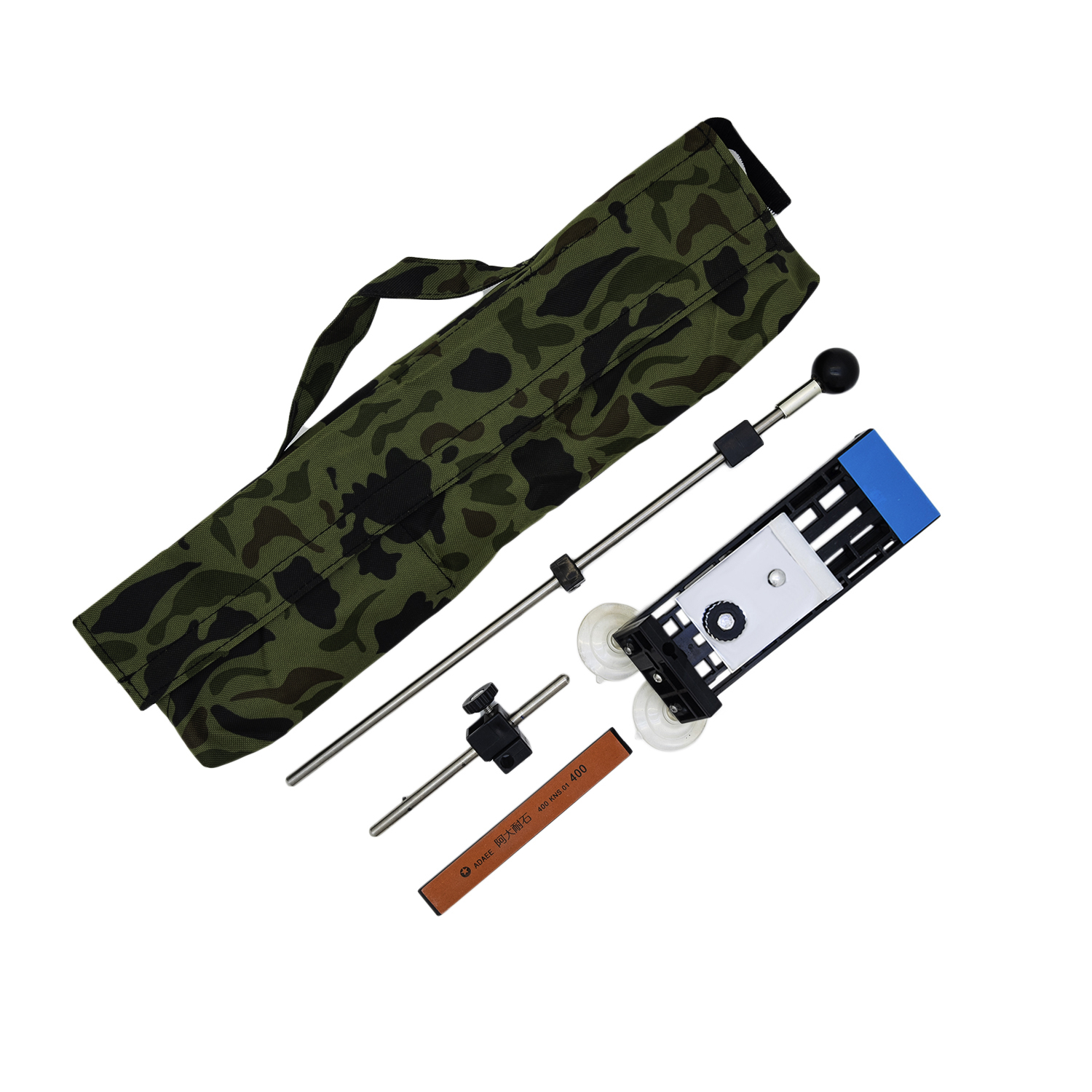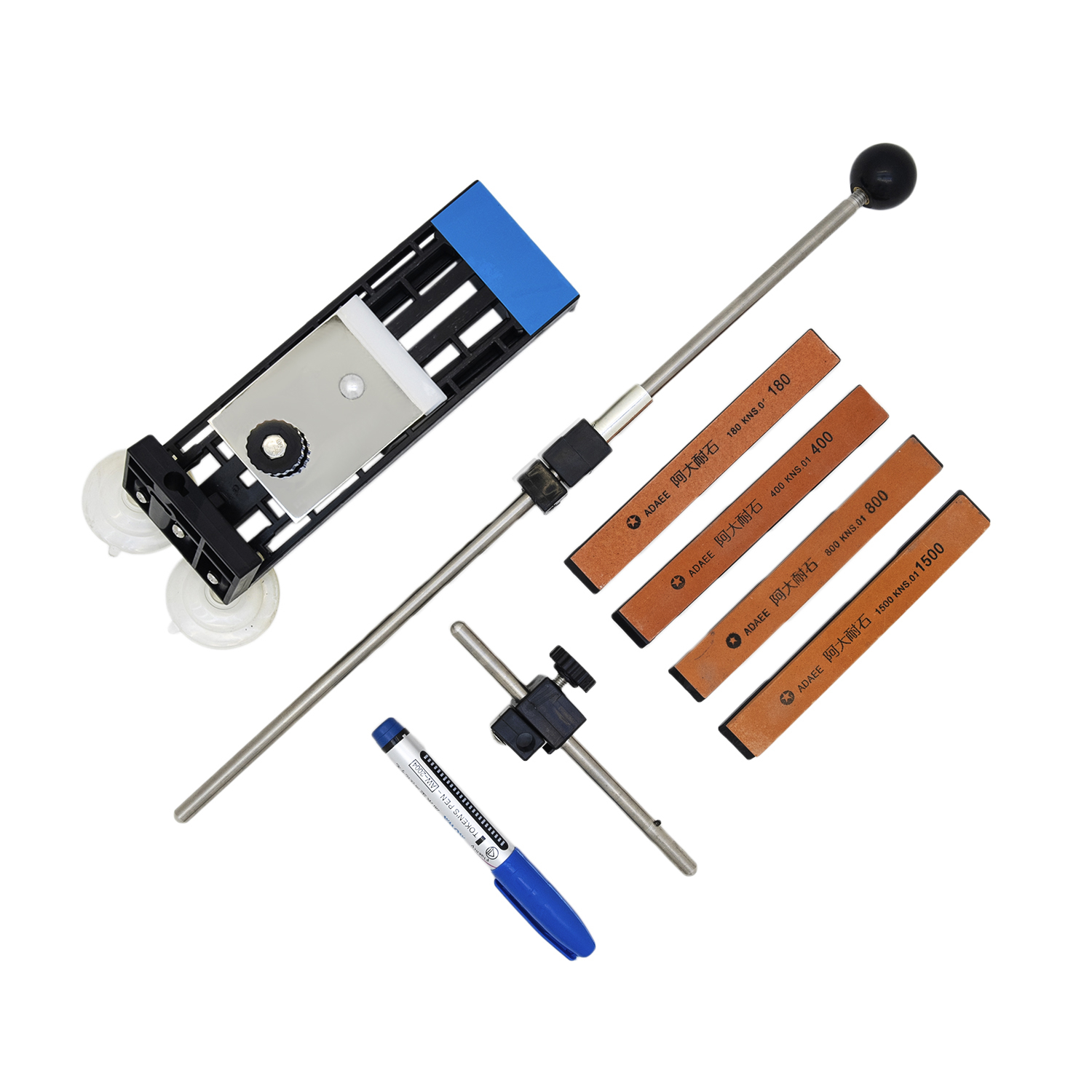 - В комплекте4 бруска разной зернистости; точильная установка; салфетка из микрофибры; инструкция; тканевый чехол-сумка; маркер